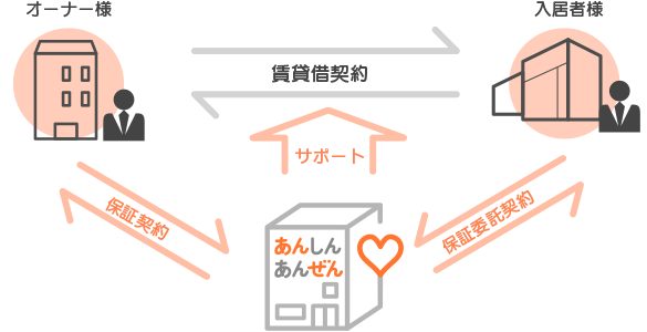 私達、あんしんあんぜんは事業用家賃保証を通じ、オーナー様の不動産賃貸事業をサポートして、より一層発展いただく事を役割とします。 あんしんあんぜんを利用する事により多忙なオーナー様のリスク負担を軽減させ、不動産賃貸事業の未来を支えていきます。 あんしんあんぜんは不動産賃貸事業の課題解決をオーナー様と共に向き合い、最適な事業環境を提供致します。